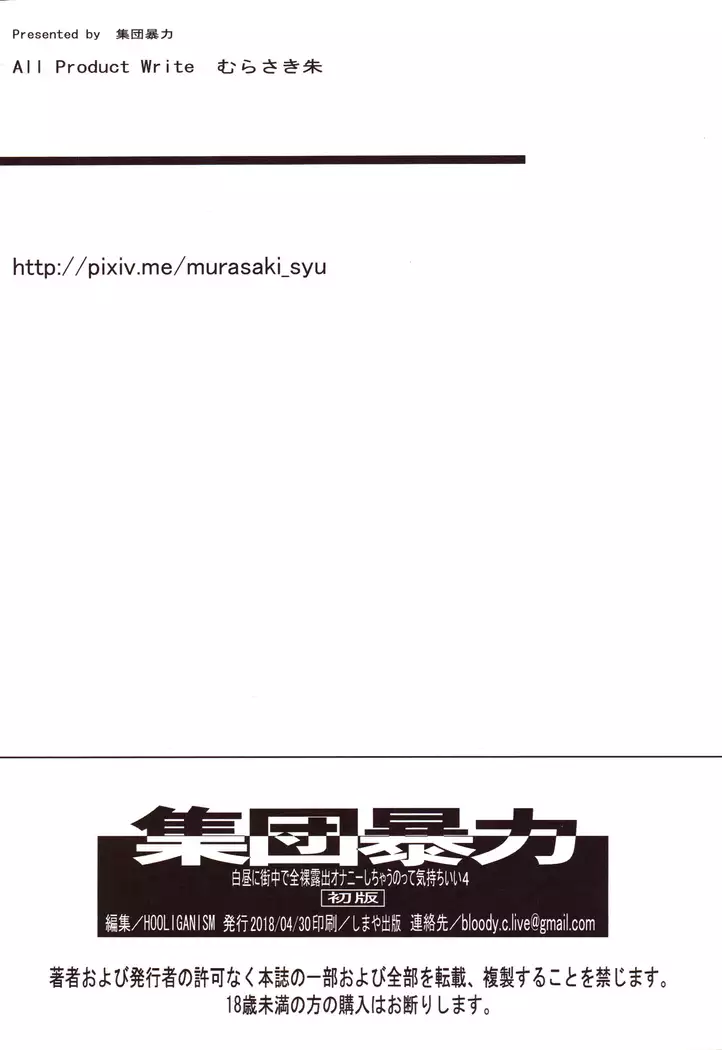 (C94) [Hooliganism (Murasaki Syu)] Hakuchuu ni Machinaka de Zenra Roshutsu Onanie Shichaunotte Kimochi ii 5