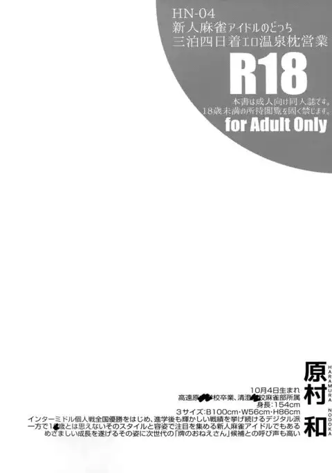 (C88) [SSB (Maririn)] Shinjin Mahjong Idol Nodocchi Sanpaku Yokka Chaku Ero Onsen Makura Eigyou (Saki)