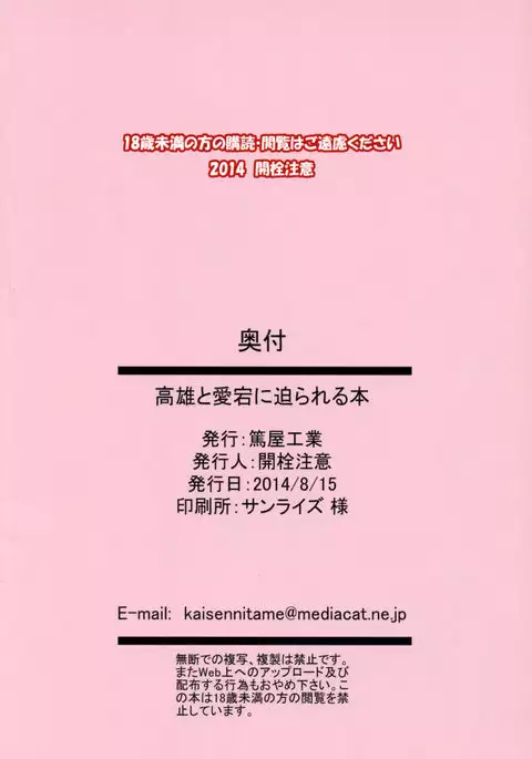 (C86) [Atsuya Kougyou (Kaisen Chuui)] Takao to Atago ni Semarareru Hon (Kantai Collection -KanColle-)