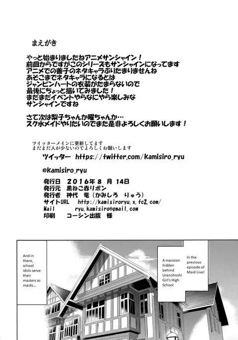 (C90) [Kuroneko Akaribon (Kamisiro Ryu)] Da-Maid Yohane no Houshiroku | Fallen Maid Yohane's Service Log (Love Live! Sunshine!!) [English] [gpower]